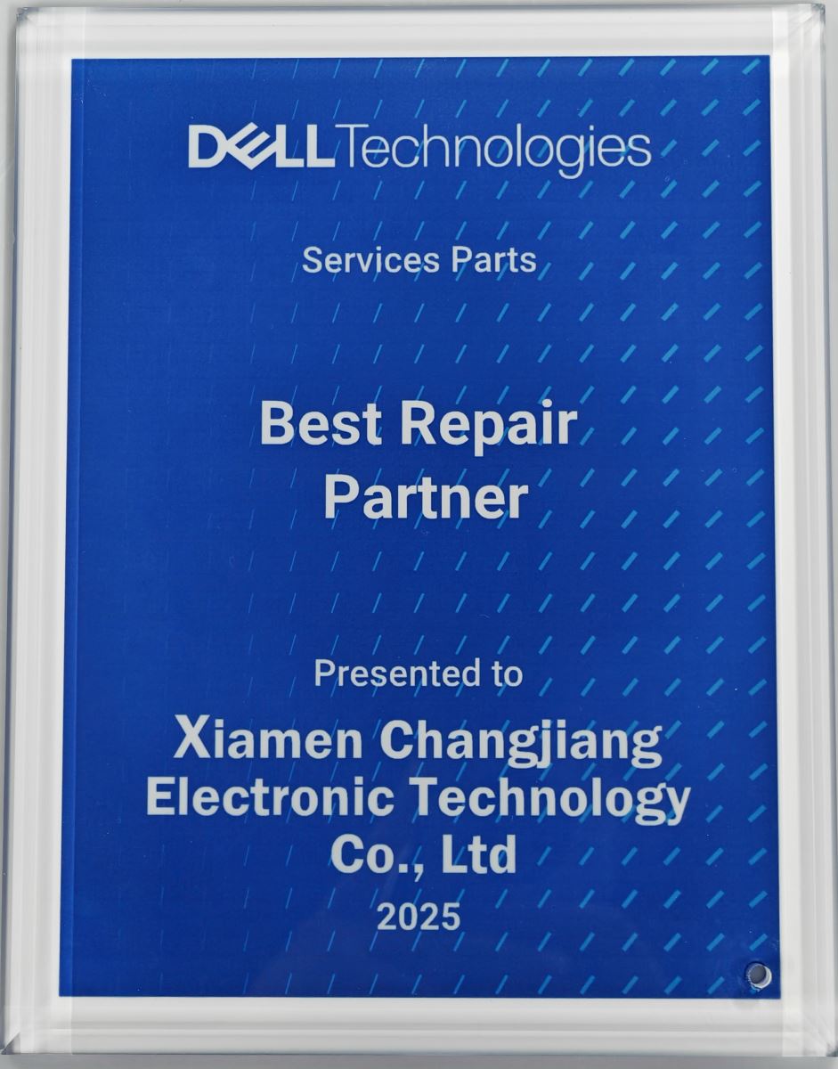 近日,厦门长江电子科技有限公司凭借在戴尔服务配件维修领域的专业能力、高效响应与优质服务,成功斩获戴尔科技(DELL Technologies)授予的“Best Repair Partner(最佳维修合作伙伴)”奖项。